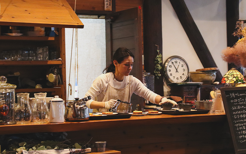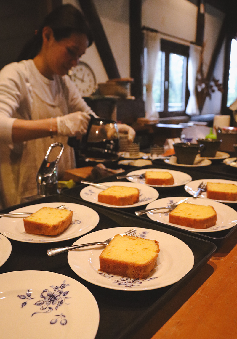 範子さんがランチを担当するようになったのは1年ほど前。旬の食材や地元の食材を使った月替わりのプレートランチやスイーツを提供しながら、訪れる人がほっとくつろぎ、つい時間を忘れてしまうような空間を、この場所で大切に育てています。