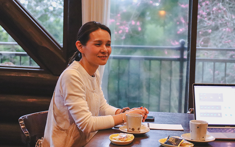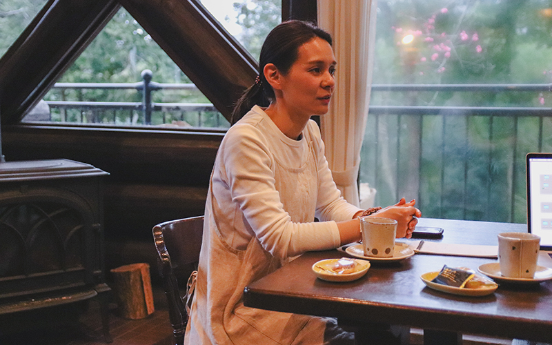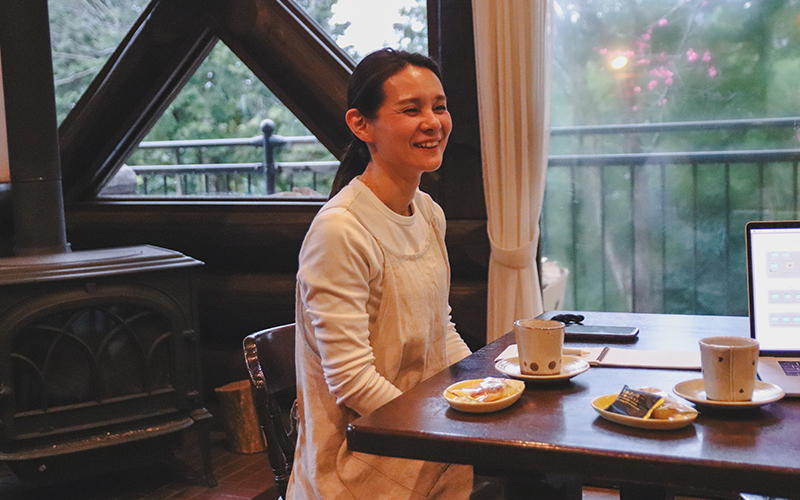 青葉山の麓のログハウスから。美味しい時間を届ける、秋岡範子さん。