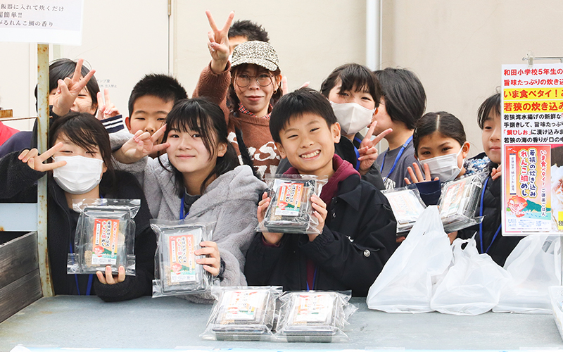 レンコダイ調査隊のときから子どもたちのサポートをしている高浜町役場の中村広花さん、担任の先生、そしてプロのデザイナーさんや水産従事者の方など、たくさんの人たちから助言や情報をもらいながら「若狭の炊き込み れんこ鯛めし」を完成させました。