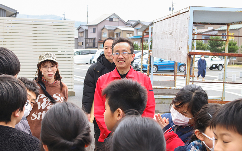 子どもたちは隣市へ移動し、レンコダイを使った名産「小鯛のささ漬け」の製造工場を見学しました。