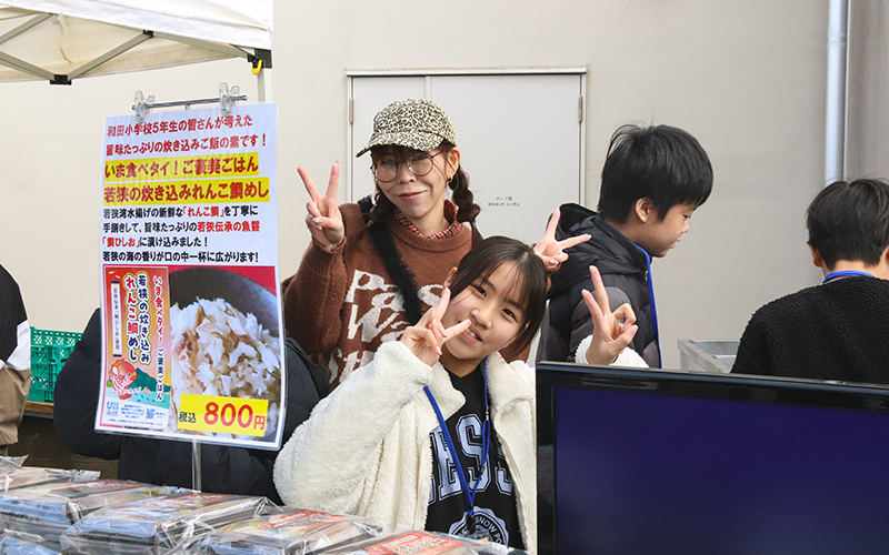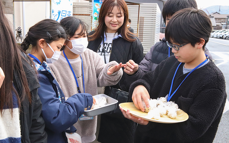 さらに子どもたちが考えた具材の昆布やネギ、ゴマなども加わり、あっさりしているのに深みのある味に仕上がりました。この美味しさを知ってほしいと、会場を動きまわって、試食用ミニおにぎりを配る子どもたち。お客さまにも「美味しい」と声をかけられていました。