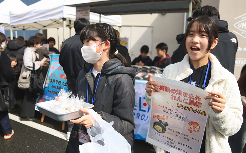 レンコダイ調査隊から、約1年近くの時間をかけて、商品開発に挑んできた子どもたち。商品は1時間ほどで見事完売。大満足の試食・販売会となりました。