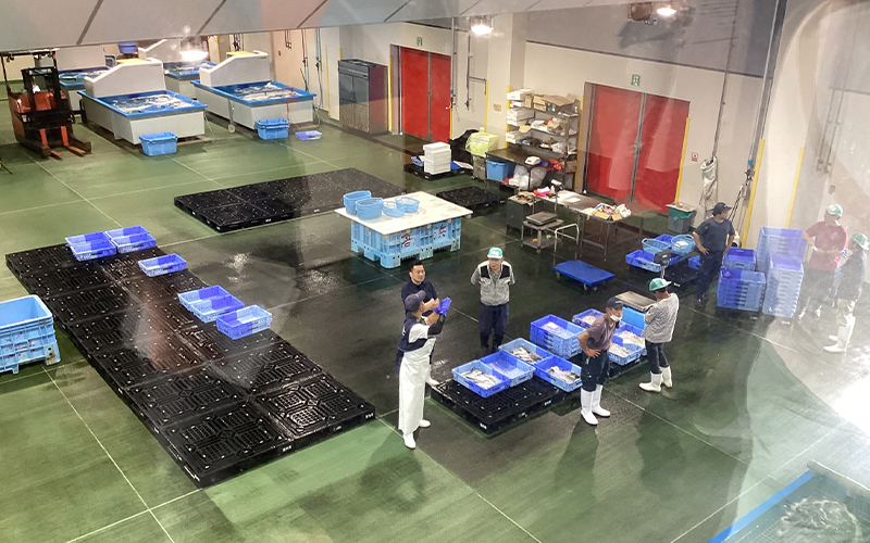 1日目、まずは若狭高浜漁業組合で海やレンコダイについての講義からスタートです。そのまま市場でセリ風景の見学を行いました。