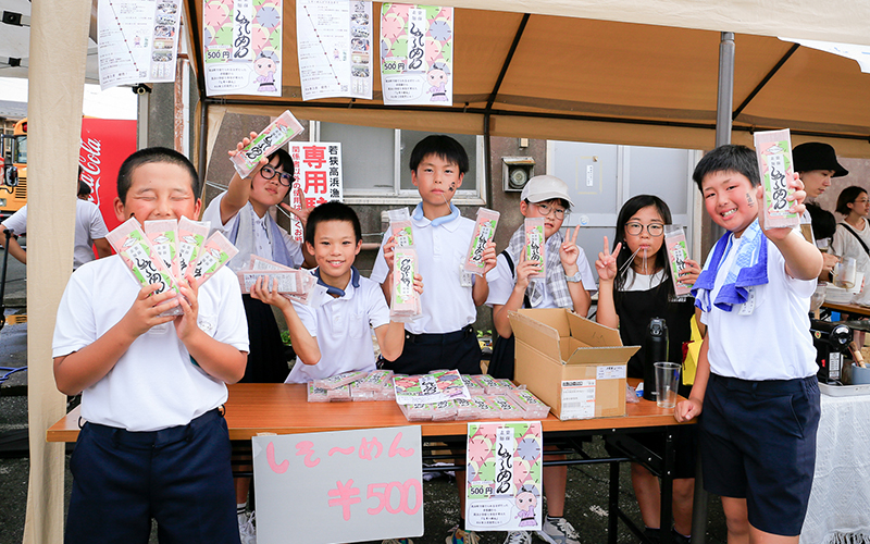 5年生もしそーめんの販促用グッズの提案や、オリジナルダンス、流しそうめんのイベントなど、今年度の活動について発表。たくさんの人に商品を知ってもらおうと、たくさんのアイディアを形にしていました。