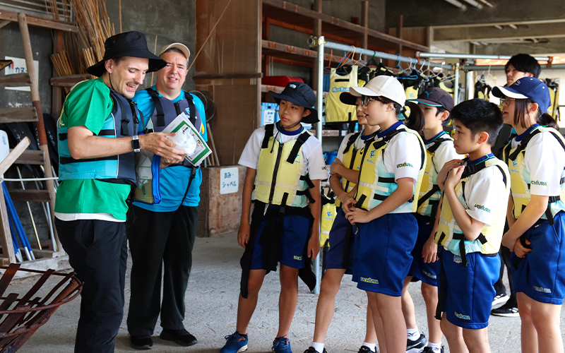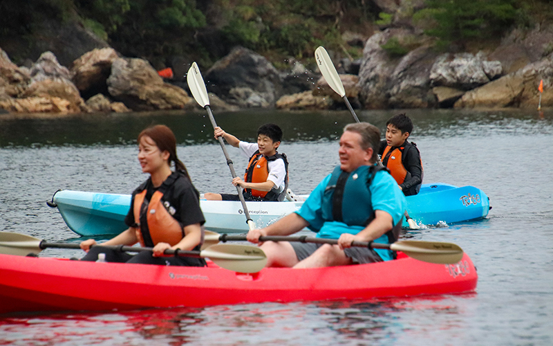 英語で声かけ、励まし合い。シーカヤックに挑戦。