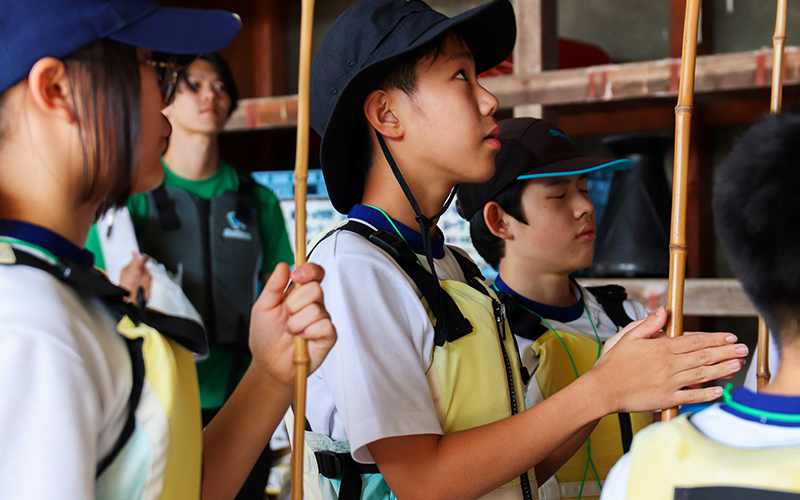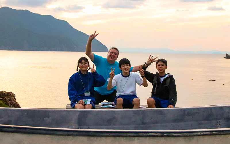 このシーカヤック体験を最後に、二泊三日のイングリッシュキャンプのカリキュラムはすべて終了。ずっと一緒に過ごしてきたALTともお別れです。生徒たちの顔にも寂しさが浮かんでいるように見えます。
