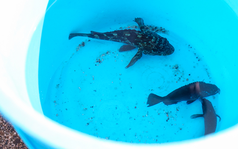 釣れるかどうか心配でしたが、意外と大漁。なかには、すごく大きな魚を釣り上げる生徒もいて、みんな大興奮していました。ALTとハイタッチして喜んでいるうちに、緊張もすっかり解けてきたみたいです。生徒たちは積極的に英語を使い、ALTとコミュニケーションをとっていました。