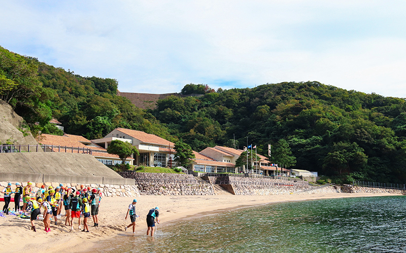 高浜型イングリッシュキャンプは近隣の小浜市にある「国立若狭湾青少年自然の家」という宿泊、食事、自然のなかでのアクティビティが体験できる施設で行われます。すぐ目の前にはきれいな海が広がり、こんなところに泊まれるなんて!と、うらやましくなるほど最高のロケーションです。